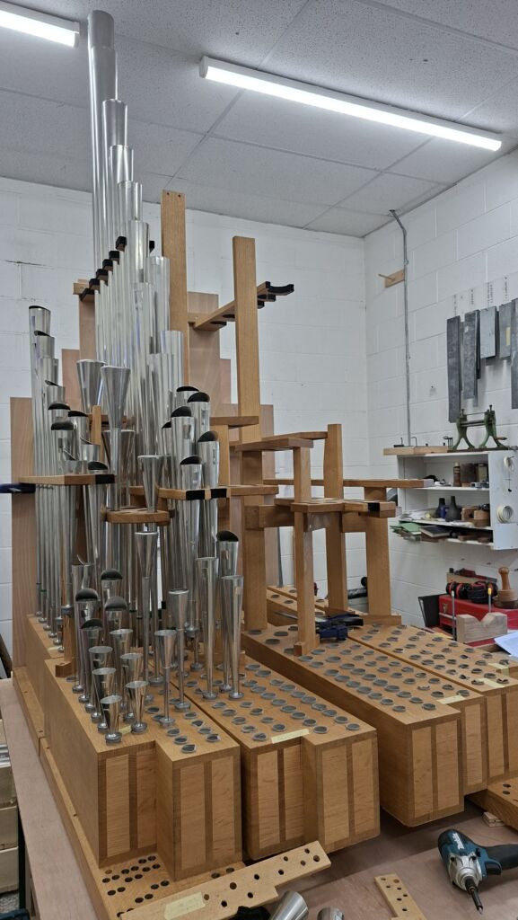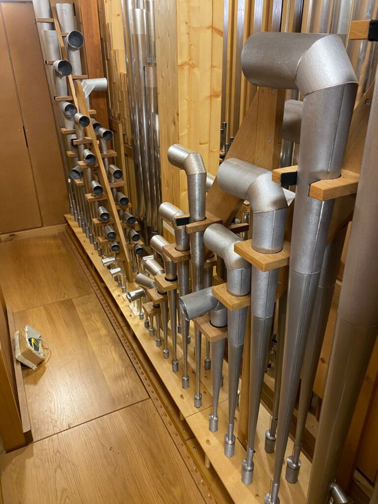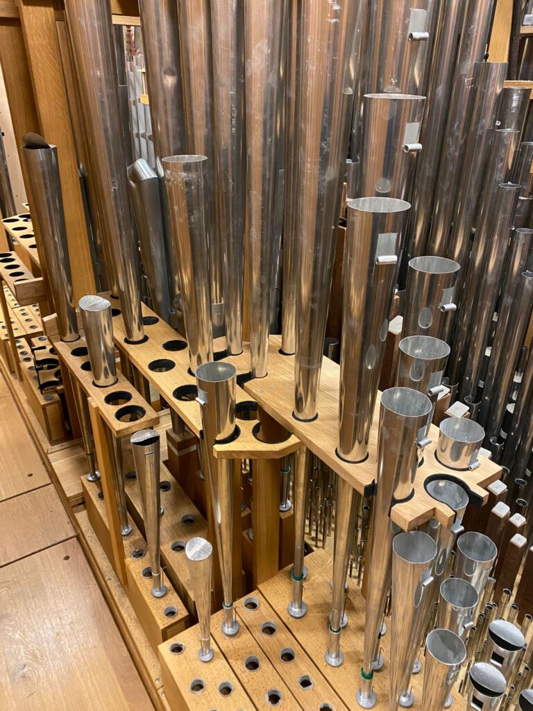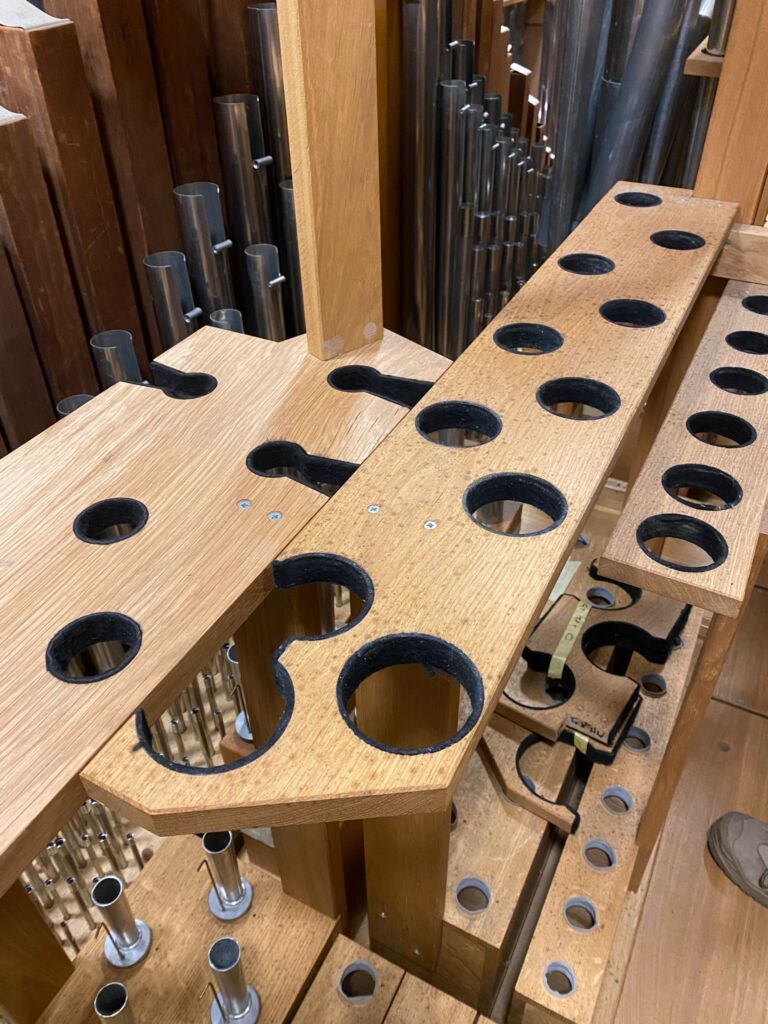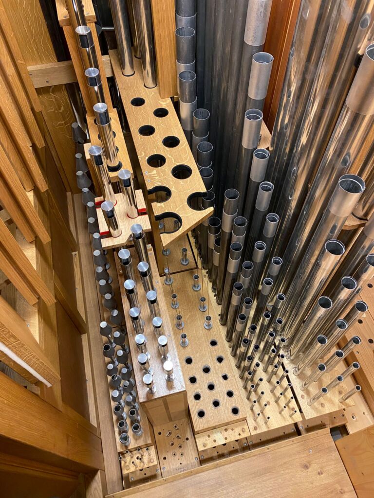 – Bombarde 16′, Trompete 8′ and Clarine 4′ revoiced with new shallots and tongues to give them a broader, more blending tone.