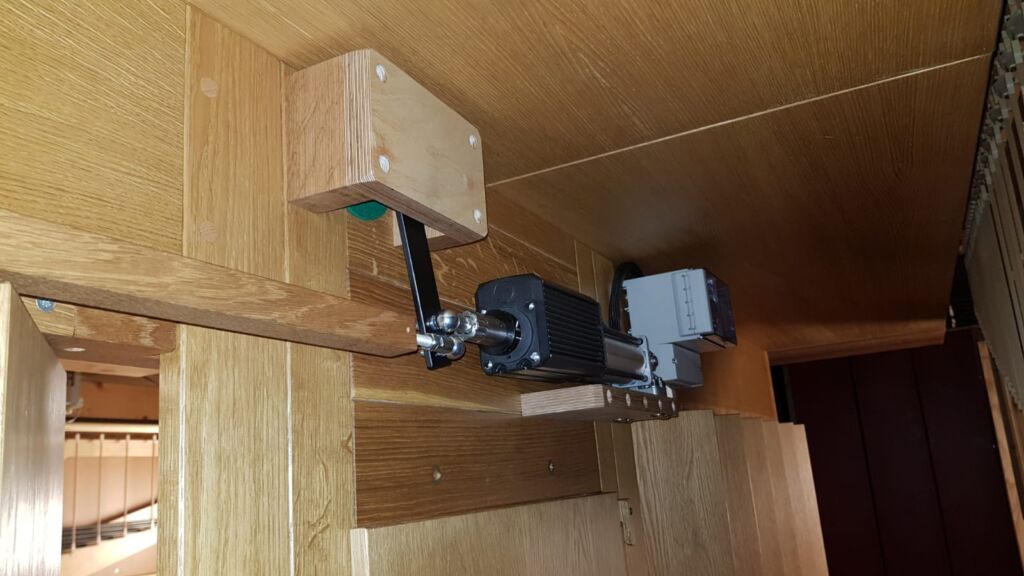 All four expression engines (two each for the Swell and Solo boxes) have been replaced with a pair (one each for the Swell and Solo boxes) of new linear actuators.
